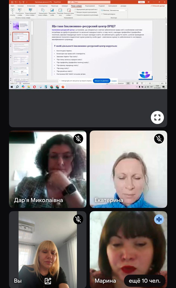 31 жовтня 2025 року викладачі кафедри спеціальної освіти доєдналися до інформаційної лекціі на тему: "Організація діяльності інклюзивно-ресурсного центру: структура, фахівці, етапи комплексної оцінки розвитку дитини". Лектор - Бевзюк Марина Сергіївна, кандидат педагогічних наук, доцент кафедри педагогіки, психології, дошкільної освіти та управління закладами освіти Закарпатського угорського університету імені Ференца Ракоці ІІ.