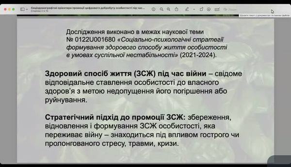 Участь студентів-біологів у вебінарі «Здоровий спосіб життя в умовах війни: соціально-психологічний підхід»