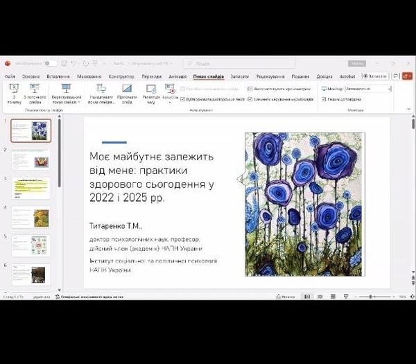 Титаренко Тетяна Михайлівна, доктор психологічних наук, професор, дійсний член (академік) НАПН України, головний науковий співробітник відділу соціальної психології особистості Інституту соціальної та політичної психології НАПН України, доповідь «Моє майбутнє залежить від мене: практики здорового сьогодення у воєнних і повоєнних умовах»;