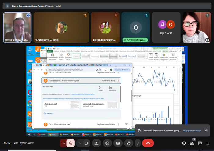31 жовтня відкрите заняття з дисципліни «Інтелектуальний аналіз даних» для студентів групи КН23Б освітньо-професійної програми «Комп’ютерні науки» провела доцент кафедри інформаційних та цифрових технологійІрина Лупан. На занятті були присутні завідувачка кафедри інформаційних та цифрових технологій, професор Олена Трифонова, доцент кафедри Ольга Рєзіна та старший викладач Дмитро Соменко.