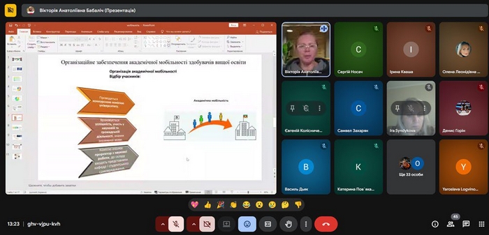 Із надзвичайно цікавою та змістовною доповіддю виступила кандидат педагогічних наук, доцент, завідувач кафедри теорії та методики спорту Центральноукраїнського державного університету імені Володимира Винниченка Бабаліч В.А., яка поділилася власним досвідом і практичними порадами щодо участі в програмах академічної мобільності, розвитку професійних навичок і формування глобального мислення у студентів.
