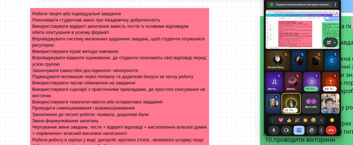 Такі нестандартні форми роботи мають важливе значення для професійного становлення майбутнього вчителя. Насамперед це стосується формування культури академічної доброчесності. Оскільки майбутні вчителі історії та громадянської освіти мають бути провідниками чесності в суспільстві, обговорення проблеми списування сьогодні закладає фундамент для побудови справедливої освітньої системи завтра.