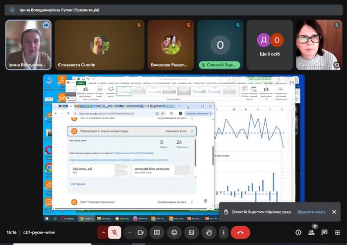 31 жовтня відкрите заняття з дисципліни «Інтелектуальний аналіз даних» для студентів групи КН23Б освітньо-професійної програми «Комп’ютерні науки» провела доцент кафедри інформаційних та цифрових технологій Ірина Лупан. На занятті були присутні завідувачка кафедри інформаційних та цифрових технологій, професор Олена Трифонова, доценти кафедри Ольга Рєзіна та старший викладачі Дмитро Соменко.