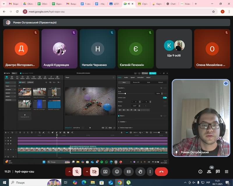Під час лекції Роман Островський детально розповів про сучасні тенденції розвитку відеоконтенту в сфері освіти та медіа, продемонстрував можливості програми CapCut, яка є одним із найпопулярніших інструментів для створення коротких навчальних, рекламних та креативних відео. Студенти ознайомилися з базовими прийомами монтажу, роботою з переходами, ефектами, текстовими елементами, музичним супроводом та кольорокорекцією.