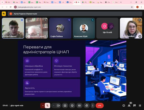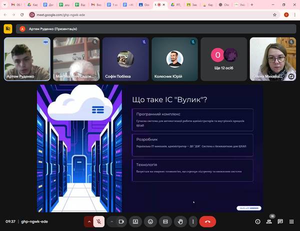 Метою заняття було ознайомити студентів із сучасними цифровими інструментами, які активно використовуються у роботі Центрів надання адміністративних послуг. Протягом зустрічі Артем Руденко детально продемонстрував функціональні можливості інформаційної системи «Вулик», що забезпечує автоматизацію внутрішніх процесів ЦНАП: електронний документообіг, оптимізацію роботи адміністраторів та підвищення ефективності обслуговування громадян.