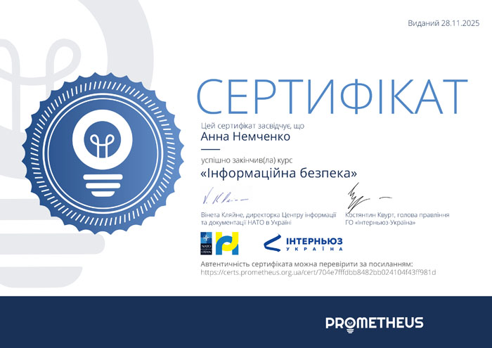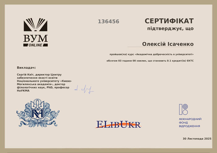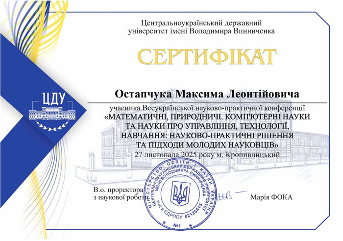 У межах освітнього процесу студенти різних спеціальностей Центральноукраїнського державного університету імені Володимира Винниченка активно долучилися до неформальної освіти, результати якої визнаються відповідно до «Порядку визнання результатів навчання, здобутих шляхом неформальної та/або інформальної освіти». Зокрема, студенти групи КН25М в межах дисципліни «Методологія та організація наукових досліджень» (проф. О.М.Трифонова), ЦТ24Б, ІНФ23Б – «Технології та стратегії сталого розвитку» (проф. М.І.Садовий), ЦТ22Б, ЦТ23БС – «Методика позаурочної роботи» (проф. М.І.Садовий), ЦТ23Б – «Основи наукових досліджень» (проф. М.І.Садовий), ЦТ22Б, ЦТ23БС – «Інструментальні засоби створення навчальних програм» (проф. О.М.Трифонова), ЦТ23Б, КН23Б, КН24Б, ІСТ23Б – «Основи захисту інформації» (проф. О.М.Трифонова) інших навчальних дисциплін розширювали свої професійні, цифрові та дослідницькі компетентності шляхом участі в програмах неформальної освіти.
