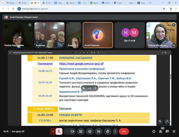 08 січня 2026 року відбулося пленарне засідання Міжнародної науково-практичної конференції «Наука та освіта», яке стало важливою платформою для обговорення актуальних викликів і перспектив розвитку науки та освіти в сучасних умовах. У роботі конференції взяли участь представники закладів вищої освіти з різних регіонів України, зокрема з Києва, Хмельницького, Кропивницького, Рівного, Кам’янця-Подільського, Ізмаїла, Бучі, Ірпеня, Харкова, Чернігова та інших міст.