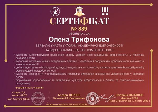 – уміння адаптувати міжнародний досвід до національного контексту, зокрема практики Великої Британії у сфері академічної доброчесності;
