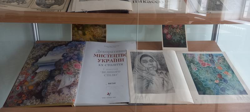 Неосвідчена селянка, самотужки, без будь якої допомоги досягла вершин світової образотворчості, полонила своїм талантом найприскіпливіших критиків, зачарувала магічною силою своїх творінь. Гортаючи сторінки яскравих альбомів, книг, періодичних видань ви знайдете чимало корисної та цікавої інформації про життя та творчість видатної Українки. Запрошуємо всіх бажаючих відвідати нашу виставку.