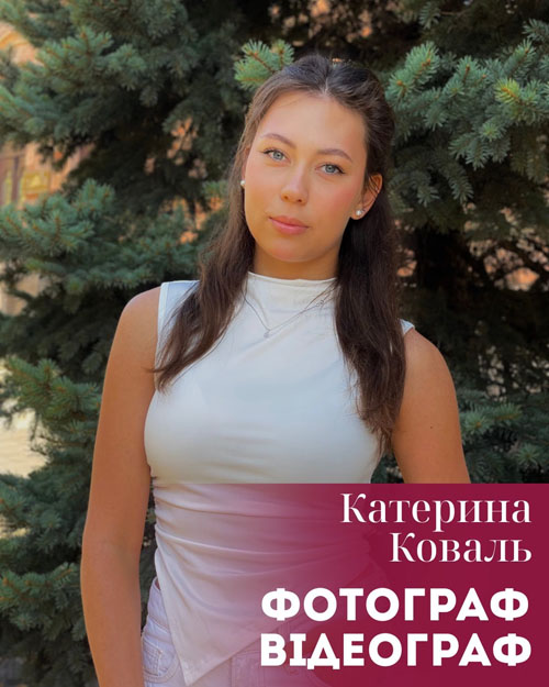 Коваль Катерина (спеціальність: Право, група ПР23Б1) - уважна фотографка й відеографка, яка зберігає найкращі моменти студентського життя у кадрі.