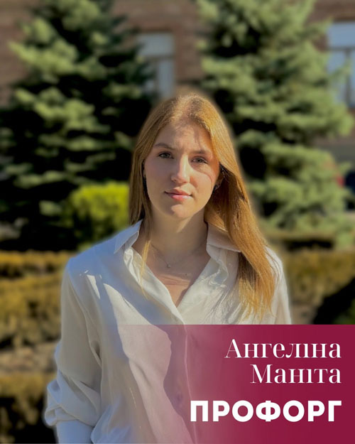 Маніта Ангеліна (спеціальність: Менеджмент, група МЛ25Б2)- уважна та відповідальна профорг, що дбає про права й добробут студентів факультету.