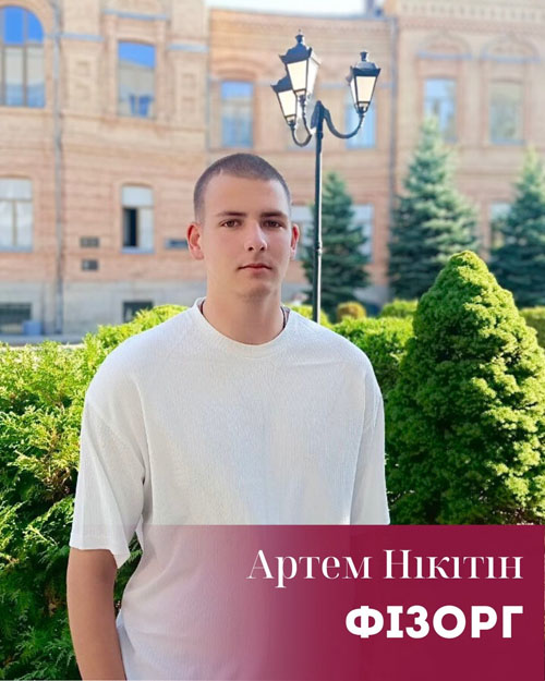 Нікітін Артем (спеціальність:Право, група ПР25Б)- активний фізорг, який популяризує здоровий спосіб життя та залучає студентів до спортивних ініціатив.