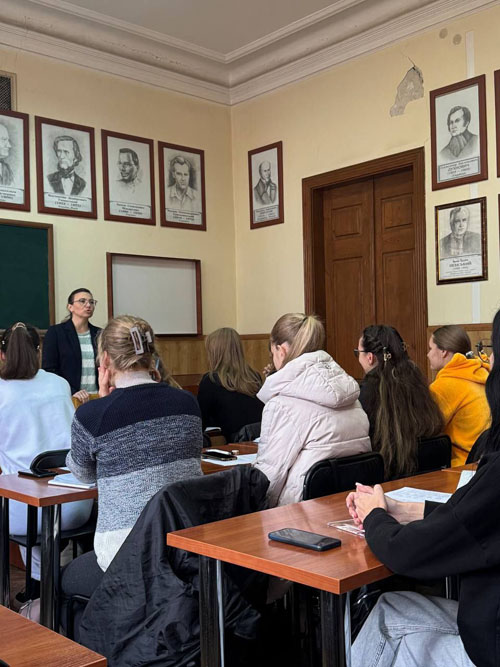 лекторка добре володіє як самим матеріалом, що викладається, так і засобами риторики, вміє при необхідності провести відновлення уваги аудиторії. Слід відзначити добре володіння лекторкою мовними засобами, схильність до доцільного гумору та засобів залучення слухачів до діалогу. |
