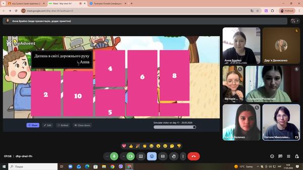 Одне із практичних занять передбачало знайомство з технологією створення різдвяного Адвент-календаря й використання цього ресурсу як основи для планування освітнього процесу на одне заняття або як циклу активностей з теми на тиждень, місяць. Перед здобувачами вищої освіти постав виклик, як адаптувати традиційне зимове відкриття комірок до роботи вихователя з дошкільнятами у будь-яку пору року. На вибір можна було створити цифровий календар у програмах MyAdvent, Tuerchen або його макет у паперовому вигляді.