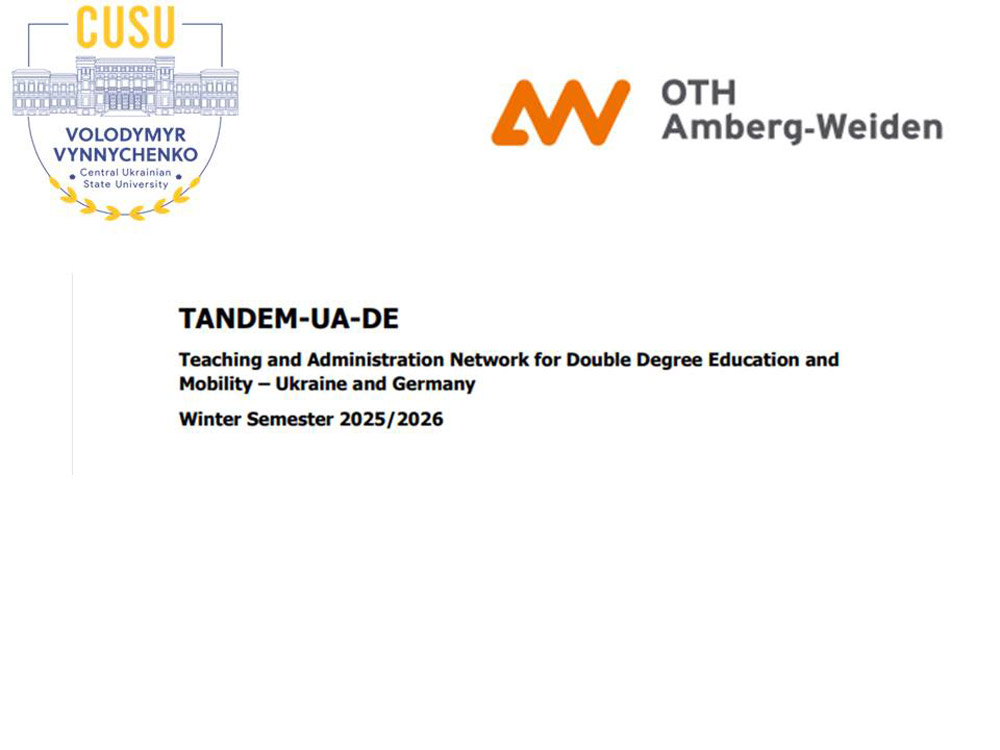 З 9 вересня 2025 року стартував набір студентів на онлайн-курси проєкту TANDEM-UA-DE (Teaching and Administration Network for Double Degree Education and Mobility – Ukraine and Germany) у зимовому семестрі 2025/2026. Протягом 11–18 вересня відбулися співбесіди та реєстрація учасників.