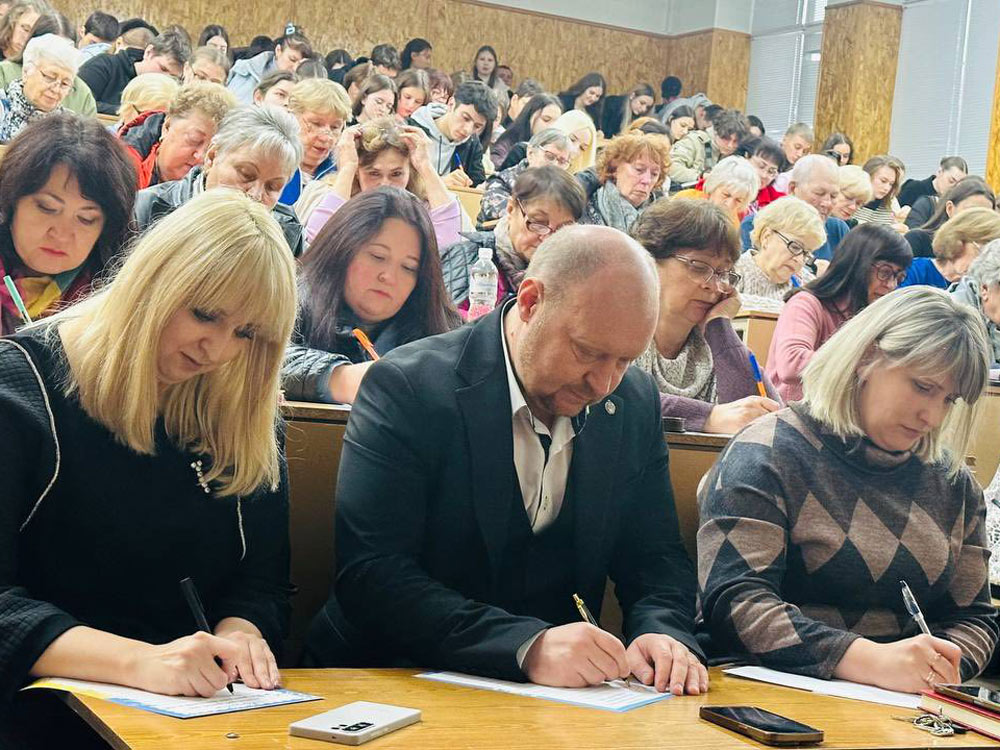 27 жовтня, у день відзначення української писемності та мови, викладачі кафедри дошкільної та початкової освіти та студенти факультету освітніх наук та мистецтв, які навчаються за спеціальностями «Початкова освіта» та «Дошкільна освіта» долучилися до важливої національної традиції – написання Радіодиктанту національної єдності. Цьогорічний диктант мав символічну та життєствердну назву «Треба жити».
