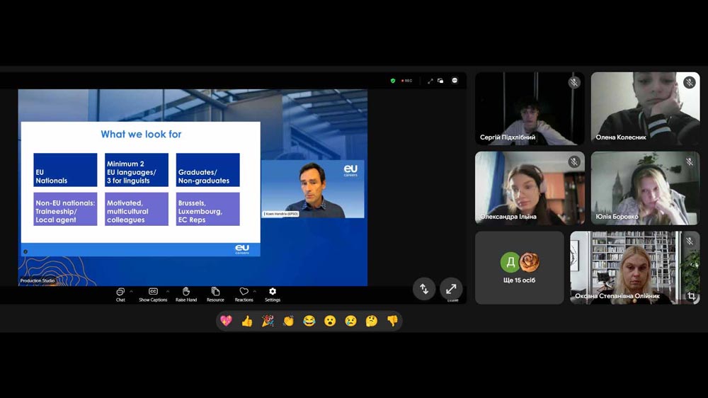 Так, 20 листопада 2025 року бакалаври й магістри кафедри, включно з викладачами здійснили віртуальний візит до Генерального директорату з питань письмового перекладу Європейської комісії, що відчинила свої онлайн-двері сотням здобувачів і колег із країн ЄС та кандидатів у члени ЄС.