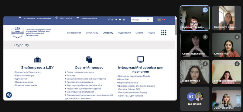 Відбулася зустріч представників студентського самоврядування Центральноукраїнського державного університету ім.В.Винниченка: голови Молодіжного Центру Вихрист Єлизавети та голови студради факультету української філології, іноземних мов та соціальних комунікацій Пінчук Юлії зі студентами спеціальностей B11.041 Філологія. Германські мови та літератури (переклад включно), перша – англійська та B11.10 Філологія (Прикладна лінгвістика), присвячена правам студентів, принципам студентоцентризму та реальним можливостям впливати на зміни в університеті.