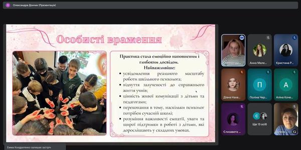 - «Найціннішим став досвід та усвідомлення відповідальності психолога за кожне професійне рішення».