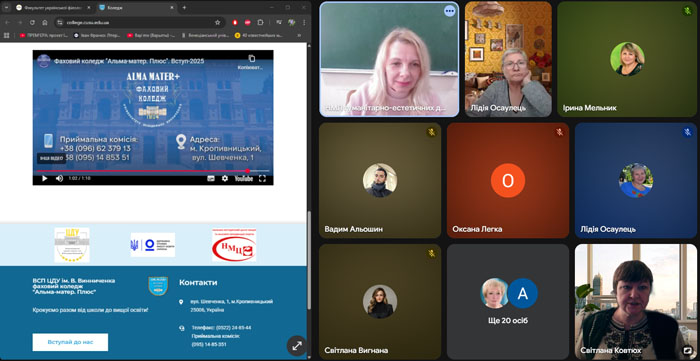 На початку зустрічі було прорекламовано Центральноукраїнський державний університет імені Володимира Винниченка як один із найкращих вишів не лише в регіоні, а й в Україні, серед інших – факультет української філології, іноземних мов та соціальних комунікацій та відокремлений структурний підрозділ фаховий коледж «Альма-матер. Плюс». Було надано всю необхідну інформацію, координати й телефон приймальної комісії, а також запрошено на День відчинених дверей 1 листопада 2025 року.
