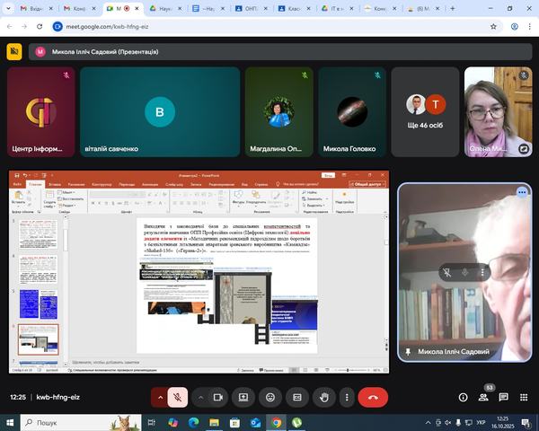 16 жовтня 2025 року викладачі та студенти кафедри інформаційних та цифрових технологій долучилися до Міжнародної науково-методичної інтернет-конференції «Методологічне забезпечення підготовки фахівця природничо-математичного напряму в умовах STEM-освіти». Активними учасниками конференції стали д.пед.н., проф. М.І.Садовий, д.пед.н., проф. О.М.Трифонова, к.пед.н. Д.В.Соменко, а також студенти спеціальностей Професійна освіта (Цифрові технології) та Середня освіта (Інформатика).