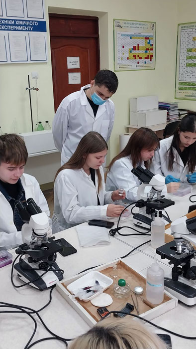Важливо, що асистентами під час заняття стали студенти-магістри спеціальності Середня освіта (Біологія та здоров’я людини, Хімія): Бойко Вікторія, Тимкович Каріна та Сабіров Богдан. У межах дисципліни «Теорія та методика організації лабораторного практикуму з біології» вони готували обладнання, реактиви, мікроскопічні матеріали, допомагали коледжанам виконувати завдання, координували хід досліду й підтримували порядок у лабораторії.