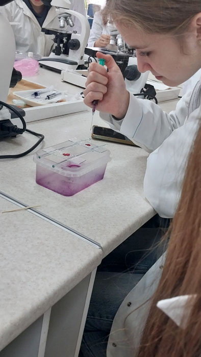 “Такі заняття дуже важливі, — зазначає доцент Марія Боброва, — Коли студенти самі проводять досліди, бачать результат і відчувають, що наука — поруч, вони розуміють, що біологія — це круто, практично і надзвичайно перспективно. Саме з таких емоцій починається справжній інтерес до науки.”