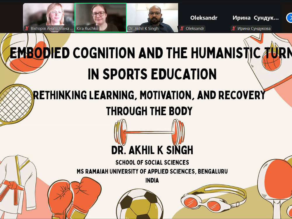 25 листопада 2025 року за ініціативи кафедри теорії та методики спорту і факультету спорту та фізичної культури відбулася міжнародна гостьова лекція доктора Ахіла Кумара Сінгха, доцента Департаменту державної політики Школи соціальних наук Університету прикладних наук Рамая (м. Бенгалуру, штат Карнатака, Індія).