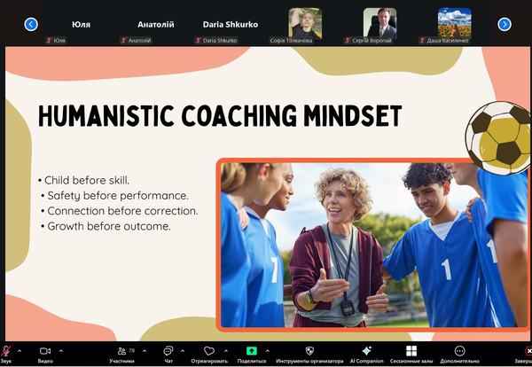 Під час зустрічі обговорювалися роль тіла в процесах пізнання, навчання й відновлення, взаємозв’язок фізичного та емоційного розвитку особистості, а також шляхи формування емпатії, стійкості та мотивації у спортивній діяльності.