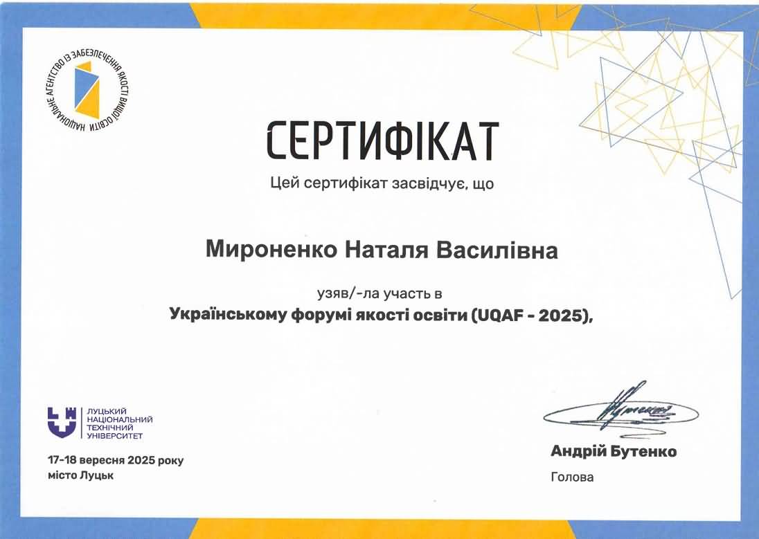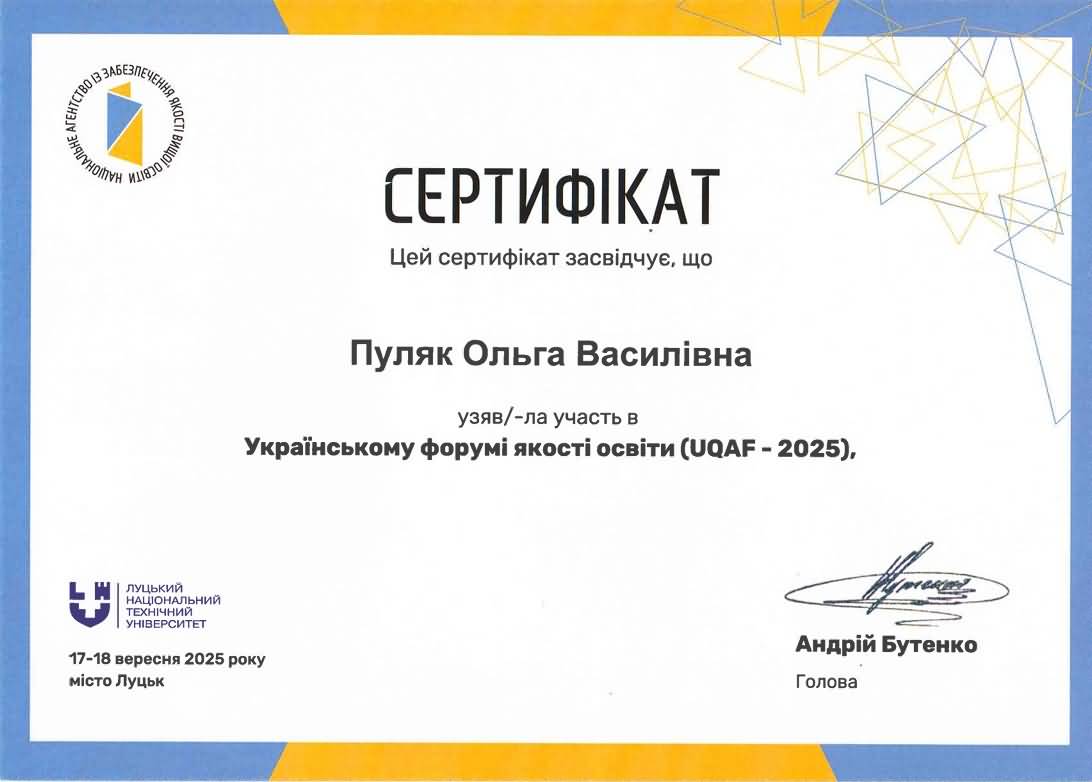 Участь викладачів кафедри технологічної та професійної освіти в Українському форумі якості освіти (UQAF-2025)