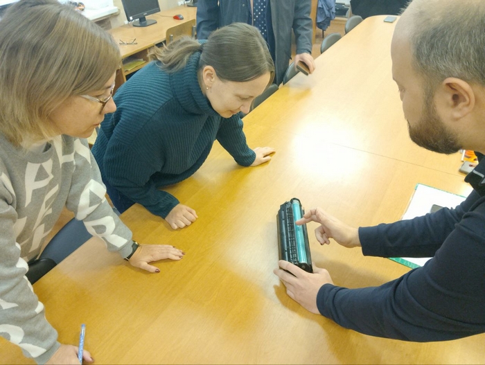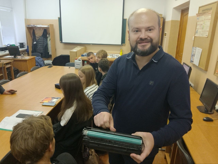 Після короткого інструктажу викладач майстерно поєднав теорію з практикою. Студенти розглянули принцип роботи лазерного принтера, дослідили його конструкцію та зрозуміли, як формується зображення. Особливо вразив експеримент, коли принтер спеціально було зупинено під час друку – і студенти змогли побачити шар тонеру, який ще не потрапив на папір і не був закріплений. Це дало можливість буквально «зазирнути всередину» технологічного процесу, побачити те, що зазвичай приховано від користувача.