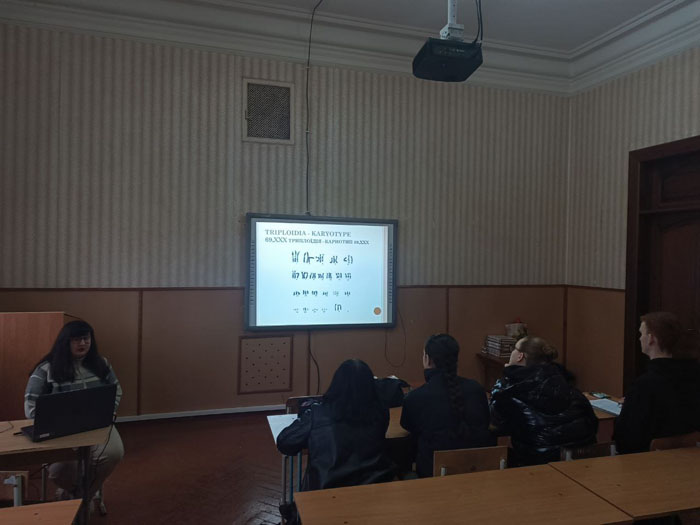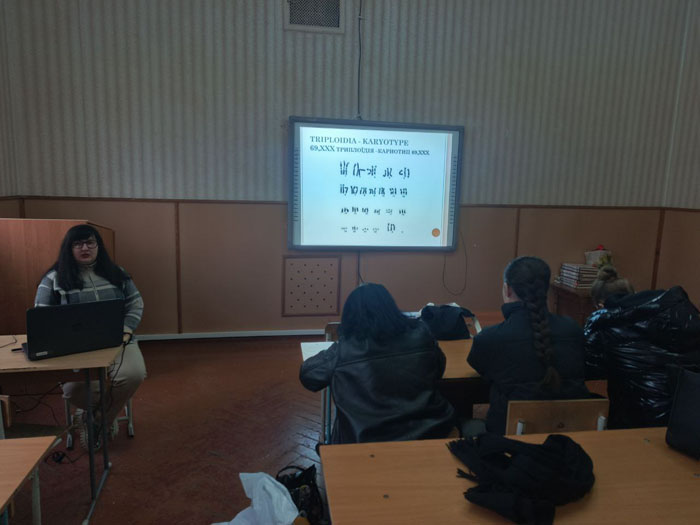 Наступне заняття було присвячене генетиці людини та темі «Хромосомні хвороби». Під час роботи учні повторили та систематизували основні генетичні поняття, необхідні для розуміння механізмів виникнення хромосомних патологій. Зокрема, було розглянуто такі терміни, як фенотип, генотип, хромосома, каріотип, диплоїдний і гаплоїдний набори хромосом, а також явища поліплоїдії та анеуплоїдії.