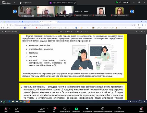 Спікерами семінару виступили проректор із науково-педагогічної роботи О.О.Нікітіна та завідувач навчально-методичного відділу С.П.Харченко. У межах заходу було розглянуто ключові аспекти формування освітньо-професійних програм, зокрема дотримання структурно-логічної схеми ОПП, особливості розробки навчальних планів, а також необхідність врахування вимог освітніх і професійних стандартів.