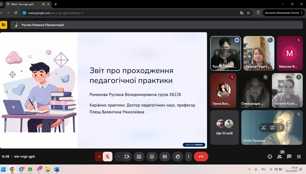 На факультеті інформаційних технологій, математики та природничих наук відбулася звітна конференція з результатів виробничої (за спеціалізацією) практики студентів ІV курсу груп ЦТ22Б та ЦТ23Б-С першого (бакалаврського) рівня вищої освіти спеціальності 015 «Професійна освіта (за спеціалізаціями)», освітньо-професійної програми «Професійна освіта (Цифрові технології)», денної форми навчання.