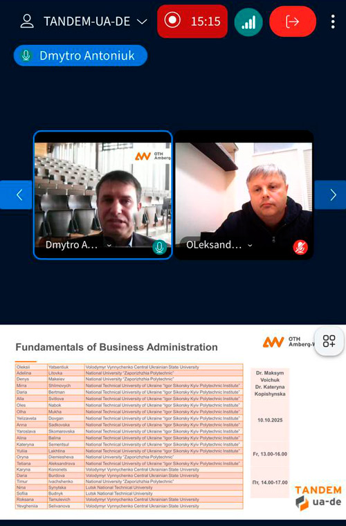 6 жовтня 2025 року відбулася перша організаційна зустріч у межах міжнародного освітнього проєкту TANDEM-UA-DE, якою офіційно розпочато зимовий семестр 2025–2026 навчального року.