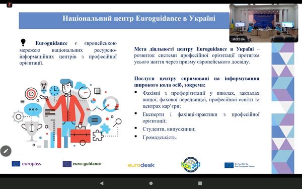 - Європейський вектор розвитку України — обговорено інструменти й ініціативи, що сприяють інтеграції української освіти в європейський простір: «Europass» — європейський сервіс для розвитку кар’єри; «Euroguidance» — підтримка освітньої мобільності та професійного орієнтування; «Eurodesk» — можливості молодіжної мобільності та волонтерства; Національний координуючий центр ЄРК — впровадження Європейської рамки кваліфікацій в Україні.