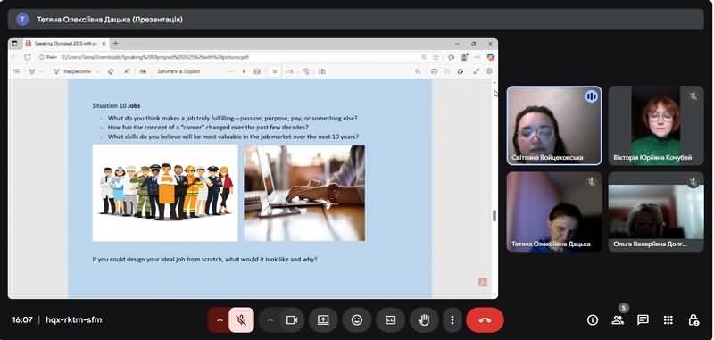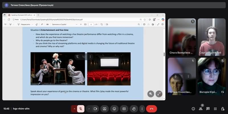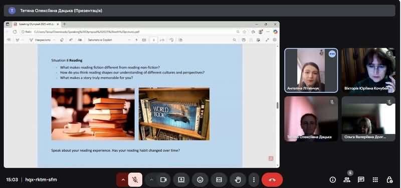Сучасні інформаційно-комунікаційні та цифрові технології стали в пригоді організаторам та учасникам заходу. В першому й другому турах випробування студенти в режимі реального часу виконували тестові завдання на платформі Classtime. За сумою набраних балів організатори визначили десятку найуспішніших олімпійців, які й потрапили у фінальний раунд змагання – онлайн спілкування учасників олімпіади із членами журі на теми театрального і кіномистецтва, колекціонування, подорожей, стосунків з дітьми, значущості соціальних мереж для молоді, сімейних цінностей, вивчення мов, читання як дозвіллєвої й академічної діяльності, вибору професій тощо. Під час спілкування студенти коментували тематичні зображення, ділилися власним досвідом, висловлювали своє ставлення до обговорюваної проблеми тощо.