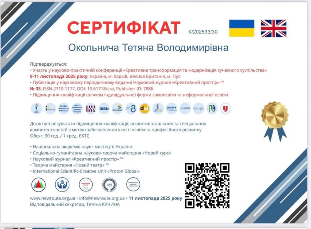 Участь студентів-науковців у конференції «Креативна трансформація та модернізація сучасного суспільства» 9-11 листопада 2025 року Україна, Велика Британія, м.Пул.