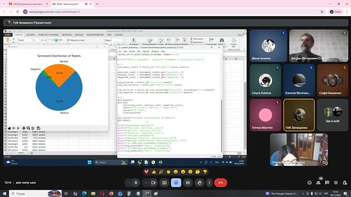 Усі роботи супроводжувалися цікавими результатами з візуалізацією. У процесі жвавого обговорення був зроблений висновок: машинний аналіз тексту потребує контролю та корекції лінгвіста.
