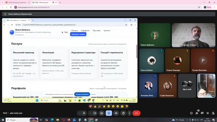 09 грудня 2025 року відбувся успішний захист проєктів з інформатики, які виконували студенти Освітньо-професійної програми «Філологія (Прикладна лінгвістика (англійська мова) і Германські мови та літератури (переклад англійська мова включно))» в рамках навчальної практики за методичного супроводу доцента кафедри інформаційних та цифрових технологій Ольга Рєзіна.