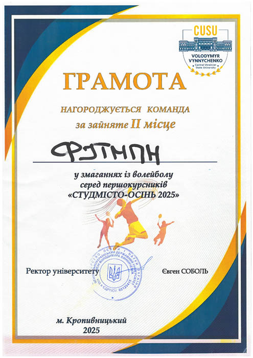 Волейбольна команда факультету показала неймовірну згуртованість і спортивну майстерність, виборовши почесне 2 місце серед команд університету. Це була гра, яка тримала в напрузі до останнього моменту!