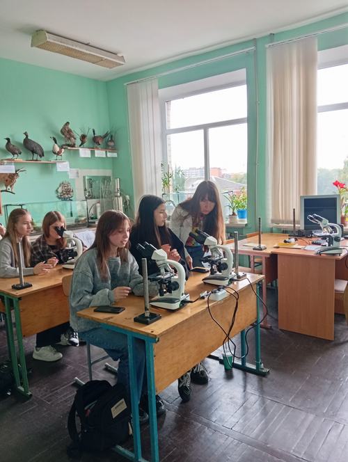 Учасники заняття мали змогу розглянути різні гістологічні зразки, клітини рослин і тварин, спостерігаючи унікальні мікроструктури живої природи. Молодші студенти з цікавістю працювали з обладнанням, ставили запитання й активно долучалися до обговорення побаченого.