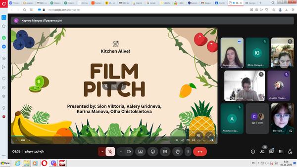Наприкінці вивчення теми «Кіномистецтво», що є складовою Практичного курсу англійської мови, студенти 3 курсу спеціальності «Середня освіта: Мова та зарубіжна література (англійська)» змагалися у представленні власних кіносценаріїв у форматі «Film Pitch Challenge». Працюючи в групах, вони підготували яскраво оформлені та ґрунтовно продумані презентації майбутніх фільмів.