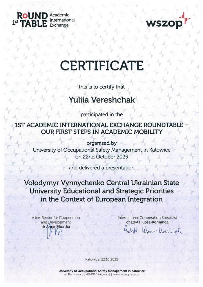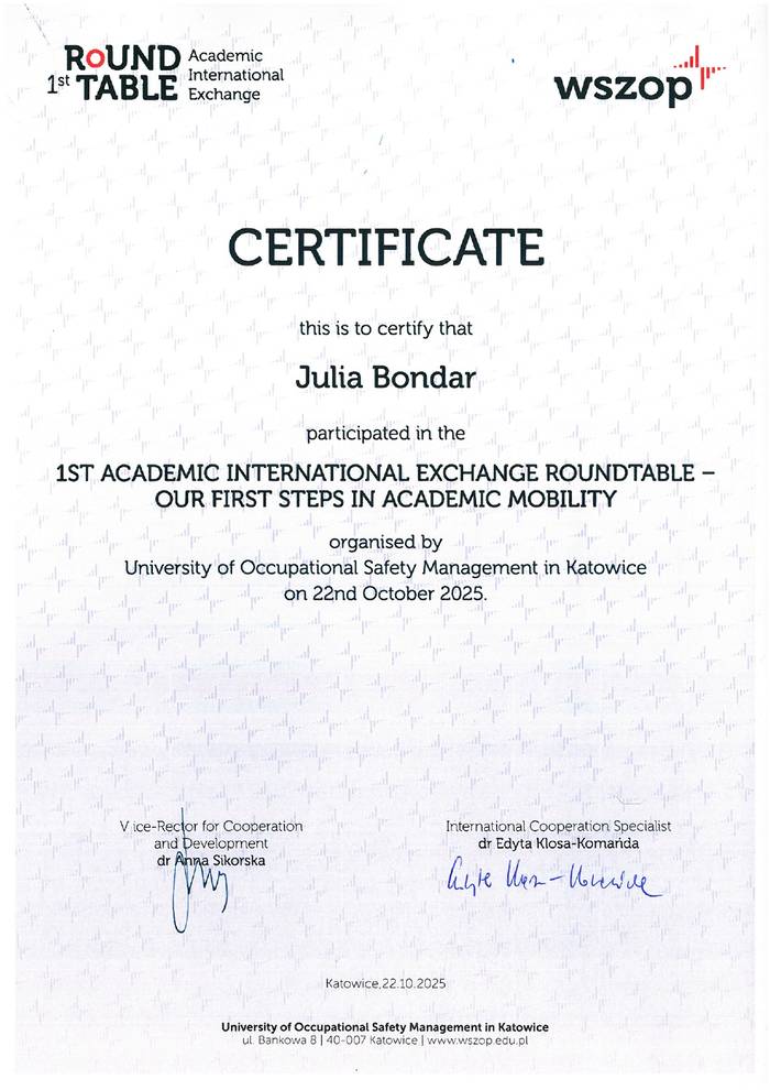 Захід, організований Університетом управління охороною праці в Катовіцах (Польща), став важливою платформою для обміну досвідом, ідеями й стратегіями розвитку міжнародної академічної співпраці.