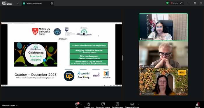 - Зінат Хан (ОАЕ) презентувала діяльність Центру академічної доброчесності в Об’єднаних Арабських Еміратах. Вона поділилася досвідом організації міжшкільних дебатів, фестивалю короткометражних фільмів, а також програми «AI in my classroom», спрямованої на розвиток педагогічних навичок використання штучного інтелекту в навчанні.