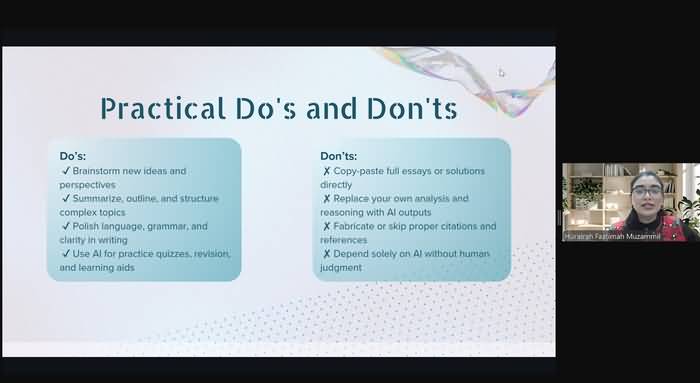 - Хурайра Фаатіма Музамміл (ОАЕ), представниця студентської робочої групи IDoA, презентувала власний ресурс для інформування однолітків про принципи академічної доброчесності.