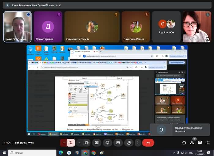 31 жовтня відкрите заняття з дисципліни «Інтелектуальний аналіз даних» для студентів групи КН23Б освітньо-професійної програми «Комп’ютерні науки» провела доцент кафедри інформаційних та цифрових технологій Ірина Лупан. На занятті були присутні завідувачка кафедри інформаційних та цифрових технологій, професор Олена Трифонова, доценти кафедри Ольга Рєзіна та старший викладачі Дмитро Соменко.