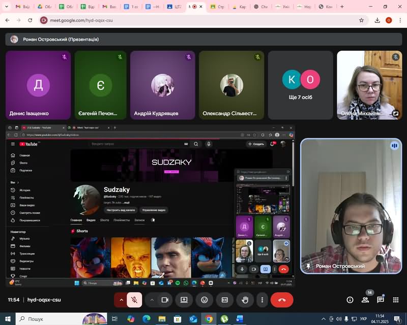 Особливу увагу було приділено створенню навчальних відео для використання у професійній освіті, а також важливості розвитку відеокомпетентностей майбутніх педагогів цифрового профілю. Лектор поділився власним досвідом роботи у сфері відеомонтажу, навів приклади власних освітніх і творчих проєктів, а також відповів на запитання студентів щодо оптимізації процесу створення відео.