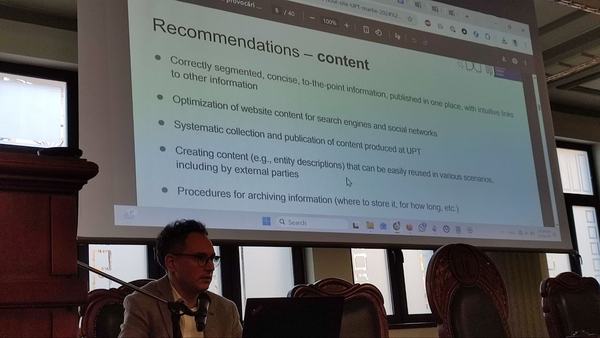 У межах міжнародного візиту до Румунії в.о.завідувача кафедри інформаційних та цифрових технологій Центральноукраїнського державного університету імені Володимира Винниченка, доктор педагогічних наук, професор О.М. Трифонова ознайомилася з європейським досвідом формування освітньо-професійних програм підготовки фахівців з вищою освітою та особливостями проходження процедур їх акредитації. Важливими для вивчення стали підходи, презентовані представниками адміністрації Політехнічного університету Тімішоари, які поділилися практиками розроблення, реалізації та оцінювання якості освітніх програм відповідно до національних і європейських стандартів.