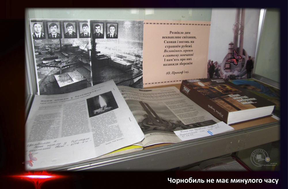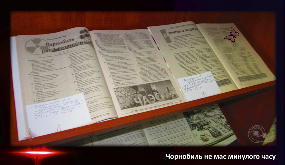 До Чорнобильської трагедії універсальний читальний зал експонує виставку «Чорнобиль не має минулого часу».
